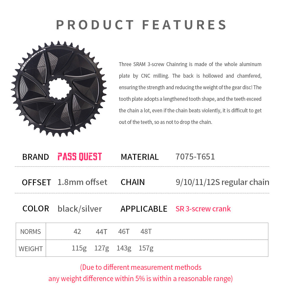 SRAM 3 Bolt (1.8mm offset outward) GRAVEL/ROAD Narrow Wide Chainring 42-48T